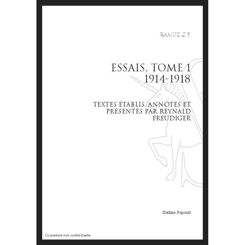 Ce volume contient les trois essais publiés par Ramuz dans les Cahiers vaudois (Raison d'être, " L'Exemple de Cézanne ", Le Grand Printemps), deux essais inédits directement associés à ces mêmes Cahiers (" Les Messieurs de Vaucherens ", "Besoin de grandeur "), et les dix conférences prononcées par l'écrivain au Conservatoire de Lausanne au cours de l'hiver 1915-1916 sous le titre " Les Grands Moments de l'Art français au XIXe siècle ".
