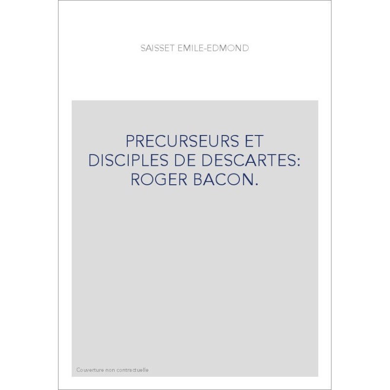 PRECURSEURS ET DISCIPLES DE DESCARTES: ROGER BACON.