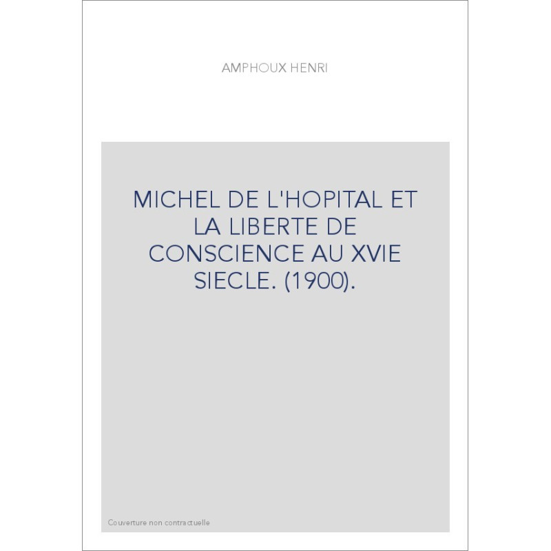 MICHEL DE L'HOPITAL ET LA LIBERTE DE CONSCIENCE AU XVIE SIECLE. (1900).