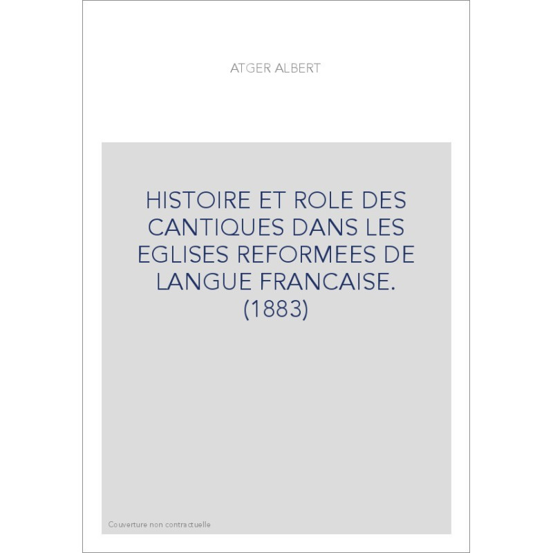 HISTOIRE ET ROLE DES CANTIQUES DANS LES EGLISES REFORMEES DE LANGUE FRANCAISE. (1883)