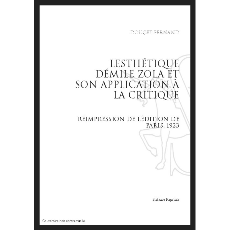 L'ESTHÉTIQUE D'ÉMILE ZOLA ET SON APPLICATION À LA CRITIQUE
