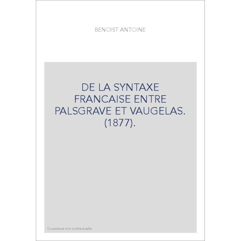 DE LA SYNTAXE FRANCAISE ENTRE PALSGRAVE ET VAUGELAS. (1877).