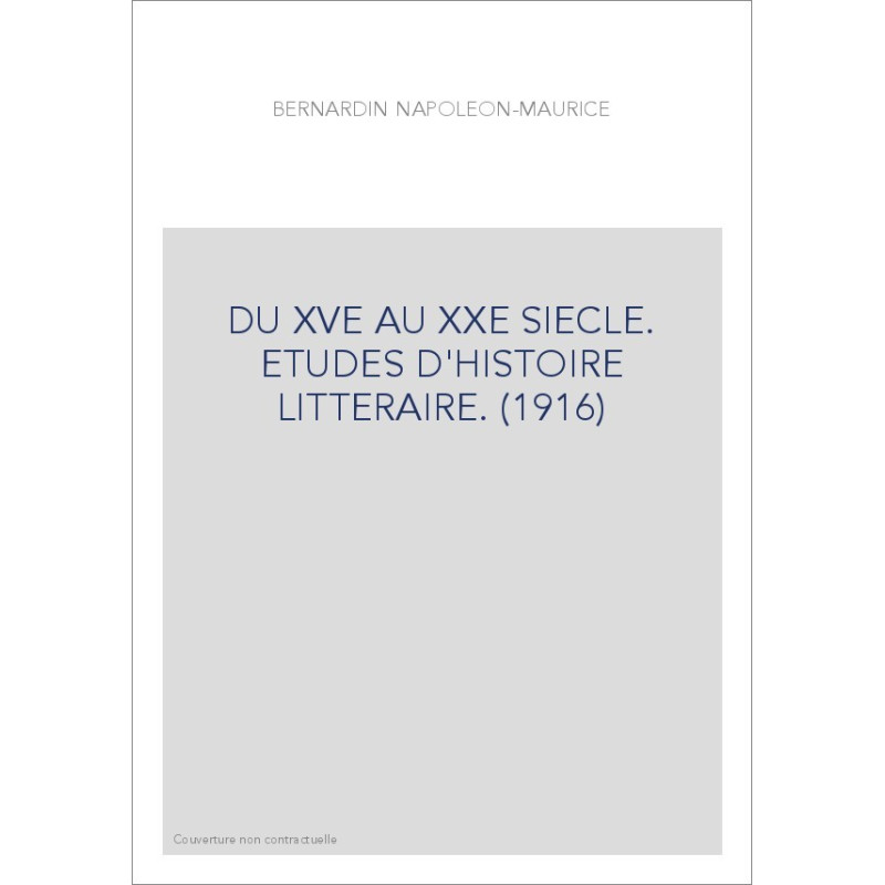 DU XVE AU XXE SIECLE. ETUDES D'HISTOIRE LITTERAIRE. (1916)