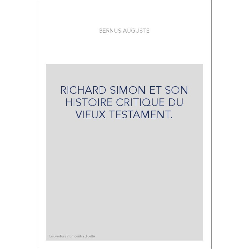 RICHARD SIMON ET SON HISTOIRE CRITIQUE DU VIEUX TESTAMENT.