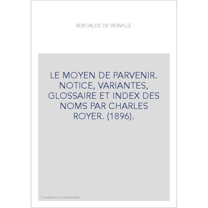 LE MOYEN DE PARVENIR. NOTICE, VARIANTES, GLOSSAIRE ET INDEX DES NOMS PAR CHARLES ROYER. (1896).