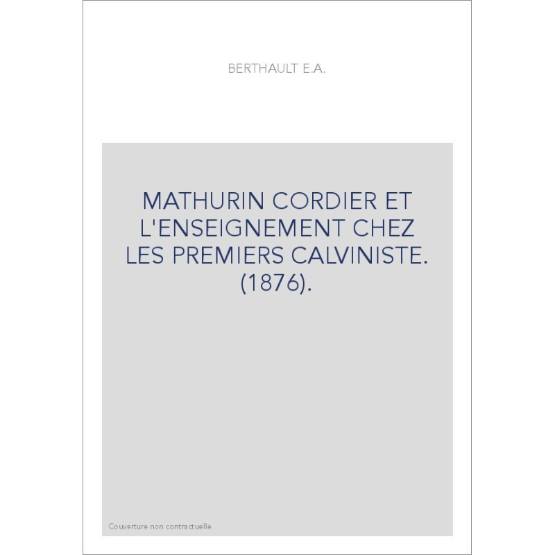 MATHURIN CORDIER ET L'ENSEIGNEMENT CHEZ LES PREMIERS CALVINISTE. (1876).