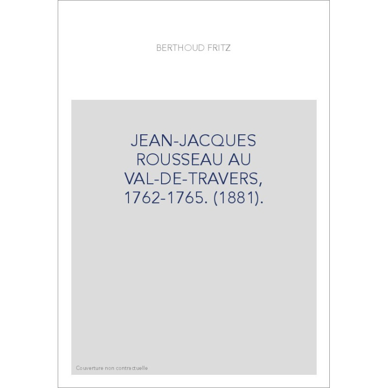 JEAN-JACQUES ROUSSEAU AU VAL-DE-TRAVERS, 1762-1765. (1881).