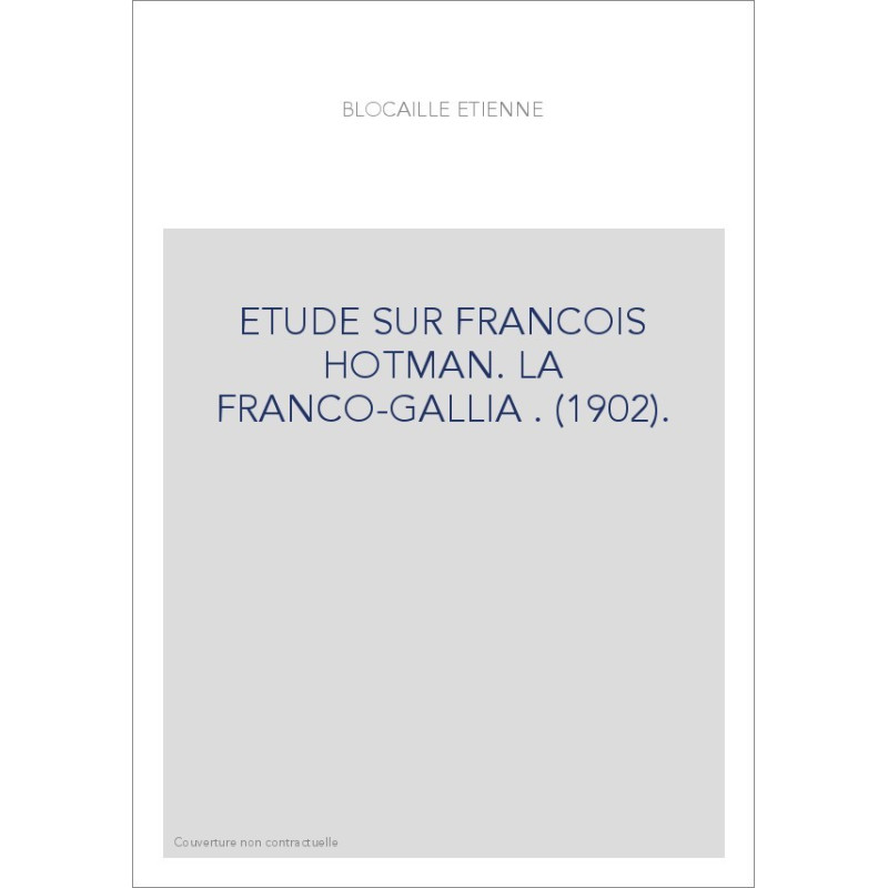 ETUDE SUR FRANCOIS HOTMAN. LA FRANCO-GALLIA . (1902). View larger