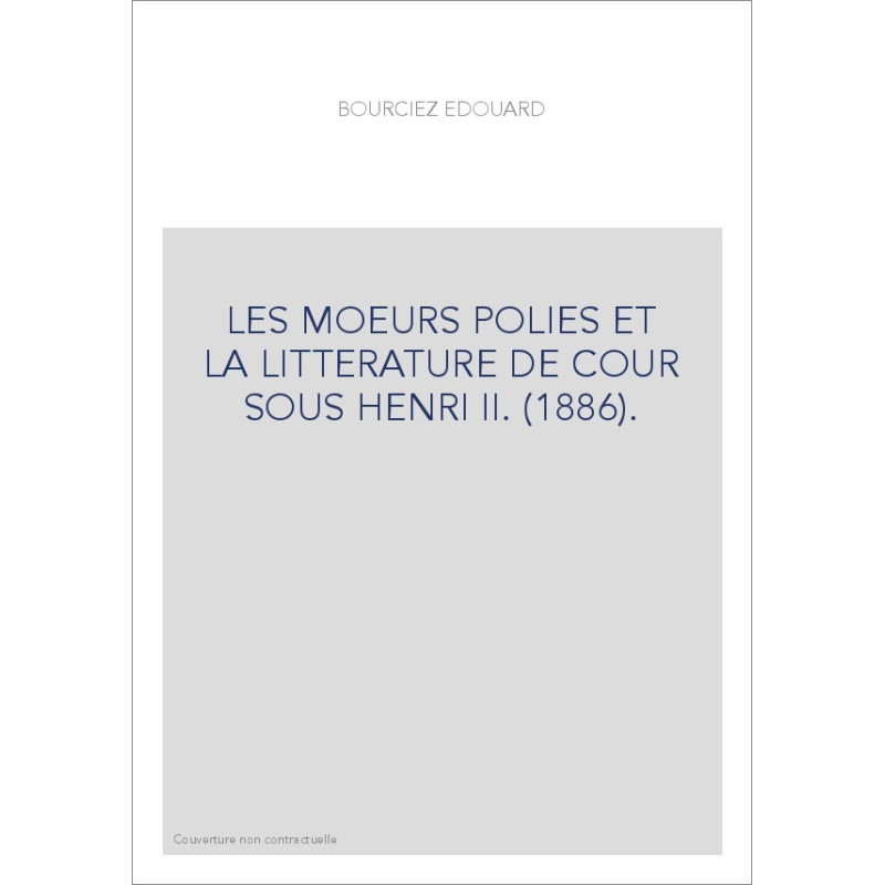 LES MOEURS POLIES ET LA LITTERATURE DE COUR SOUS HENRI II. (1886).