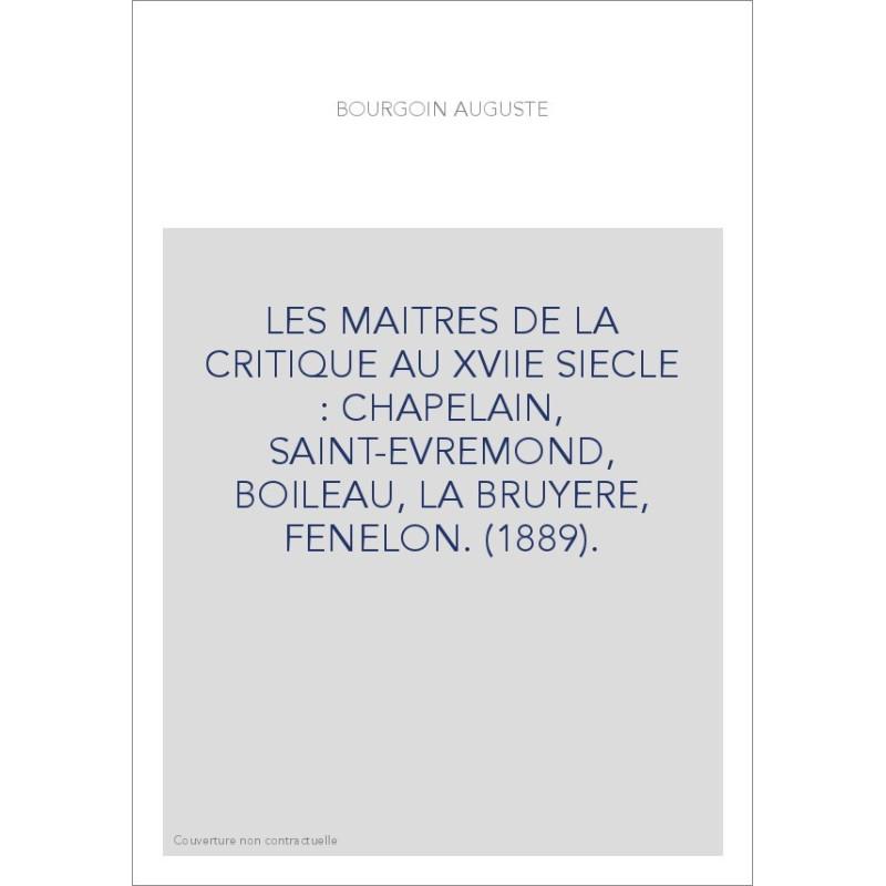 LES MAITRES DE LA CRITIQUE AU XVIIE SIECLE : CHAPELAIN, SAINT-EVREMOND, BOILEAU, LA BRUYERE, FENELON. (1889). View larger