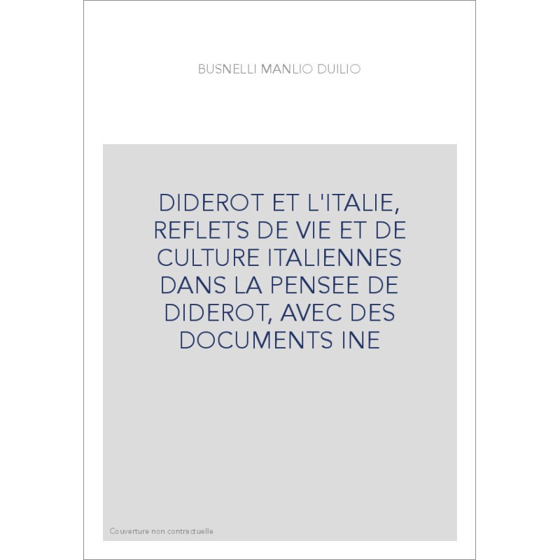 DIDEROT ET L'ITALIE, REFLETS DE VIE ET DE CULTURE ITALIENNES DANS LA PENSEE DE DIDEROT, AVEC DES DOCUMENTS INE