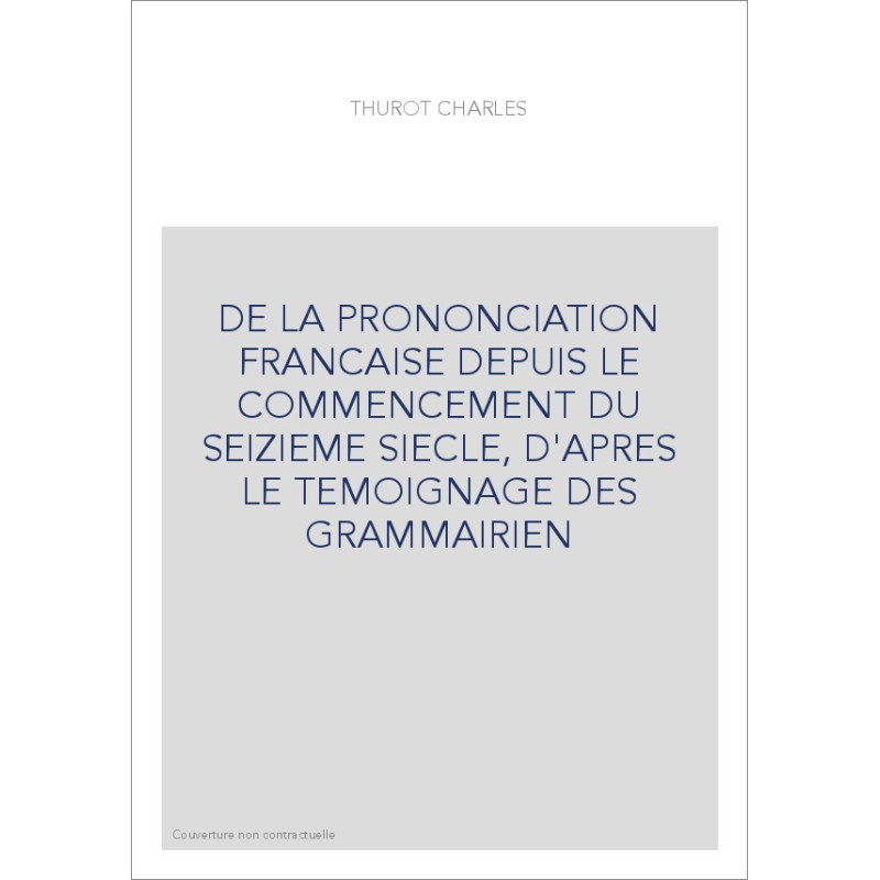 DE LA PRONONCIATION FRANCAISE DEPUIS LE COMMENCEMENT DU SEIZIEME SIECLE, D'APRES LE TEMOIGNAGE DES GRAMMAIRIE
