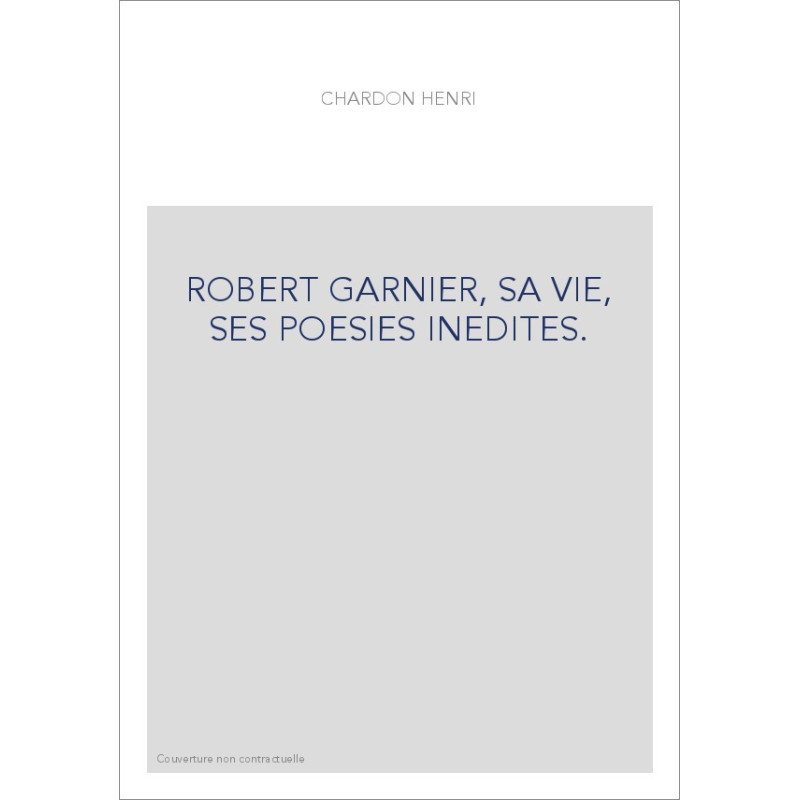 ROBERT GARNIER, SA VIE, SES POESIES INEDITES.