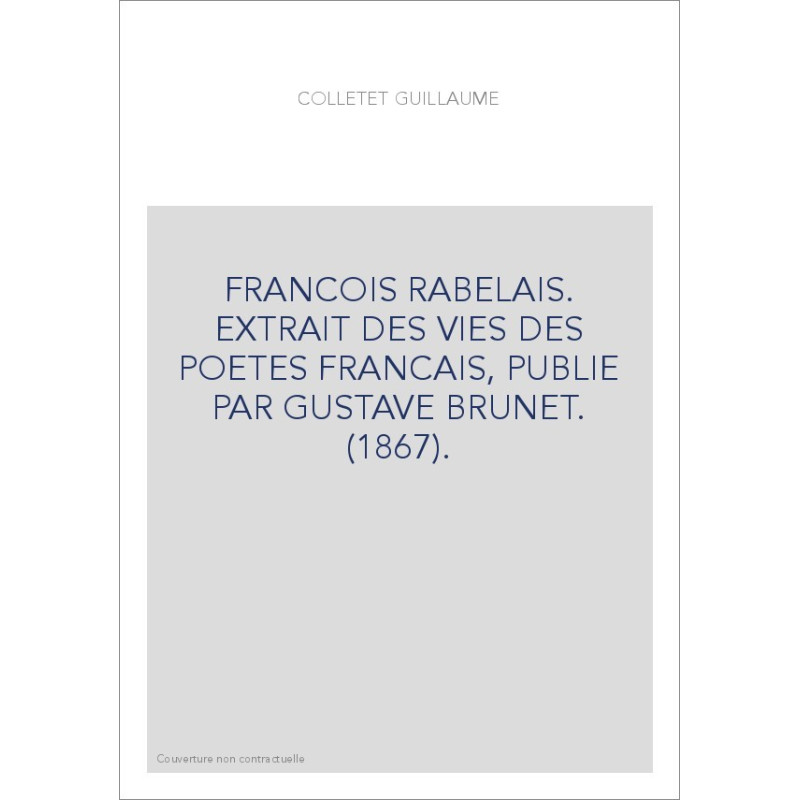 FRANCOIS RABELAIS. EXTRAIT DES VIES DES POETES FRANCAIS, PUBLIE PAR GUSTAVE BRUNET. (1867).