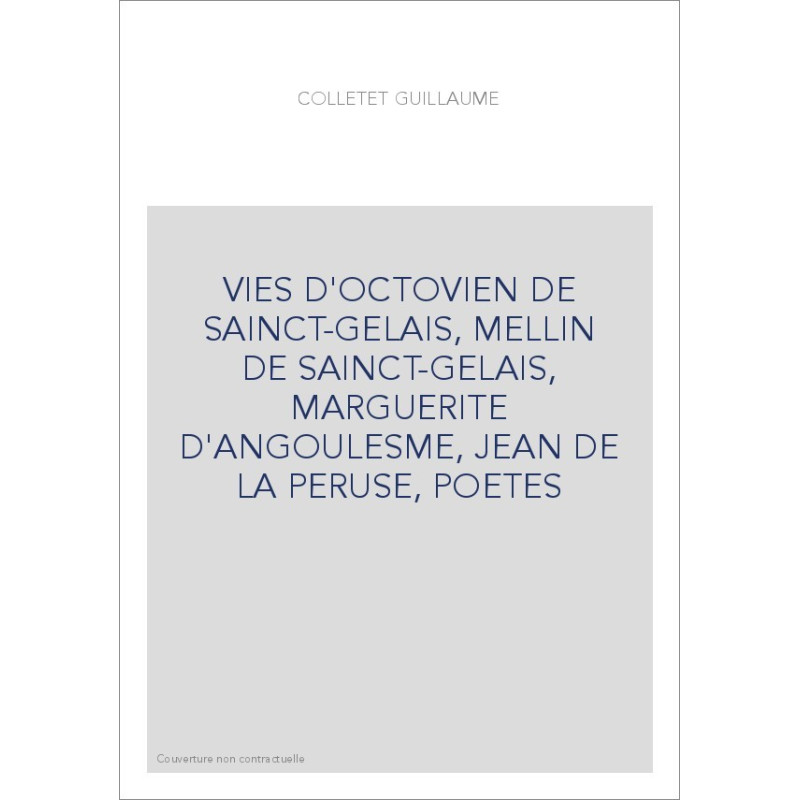 VIES D'OCTOVIEN DE SAINCT-GELAIS, MELLIN DE SAINCT-GELAIS, MARGUERITE D'ANGOULESME, JEAN DE LA PERUSE, POETES