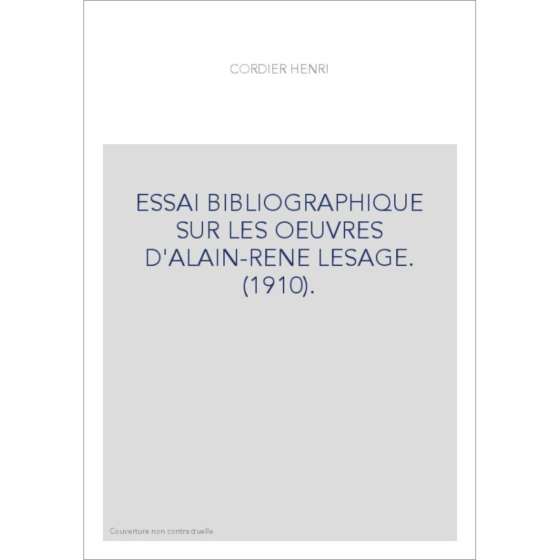 ESSAI BIBLIOGRAPHIQUE SUR LES OEUVRES D'ALAIN-RENE LESAGE. (1910).