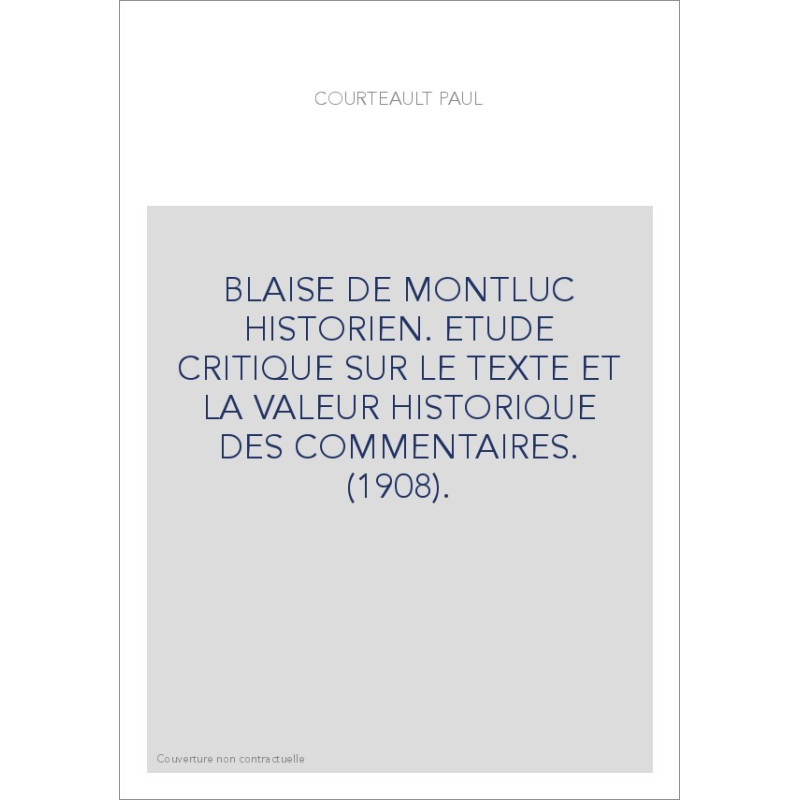 BLAISE DE MONTLUC HISTORIEN. ETUDE CRITIQUE SUR LE TEXTE ET LA VALEUR HISTORIQUE DES COMMENTAIRES. (1908).