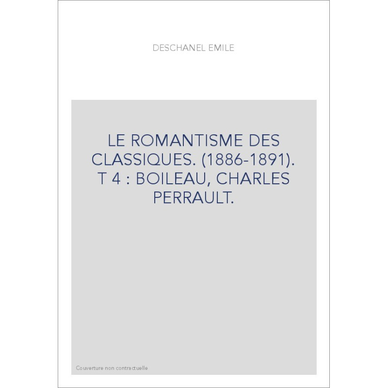 LE ROMANTISME DES CLASSIQUES. (1886-1891). T 4 : BOILEAU, CHARLES PERRAULT.