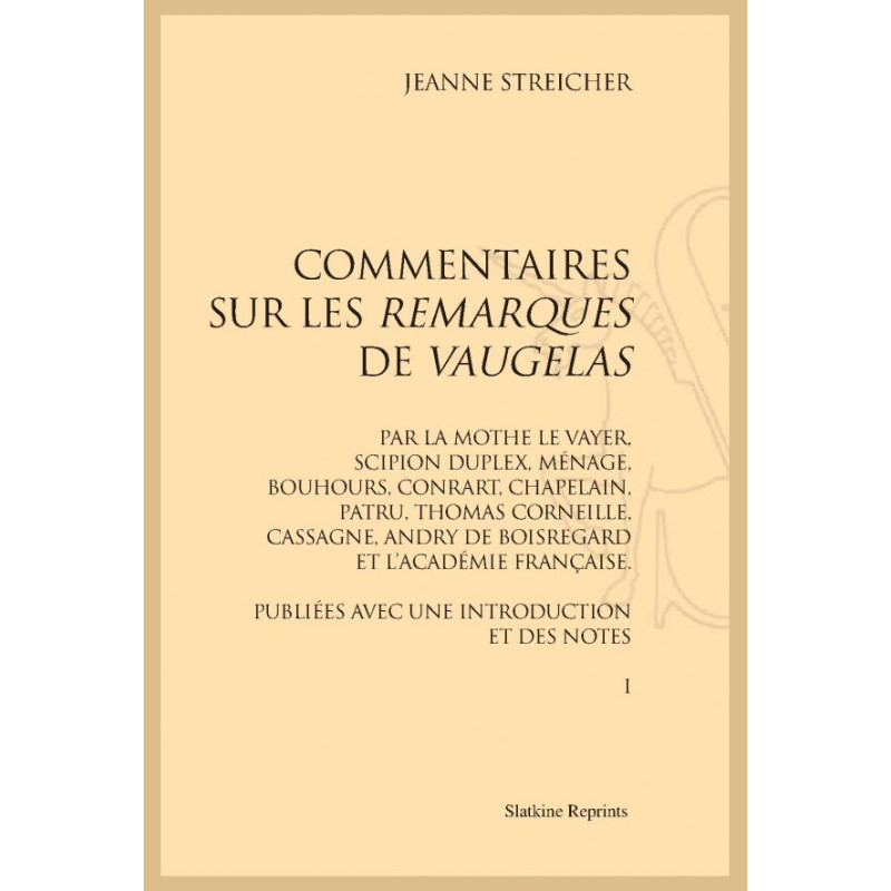| Indic. sur auteur original | VAUGELAS LA MOTHE LE VAYER MENAGE BOUHOURS CONRART CHAPELAIN PATRU CORNEILLE |