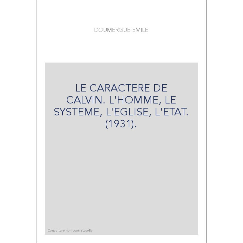 LE CARACTERE DE CALVIN. L'HOMME, LE SYSTEME, L'EGLISE, L'ETAT. (1931). View larger