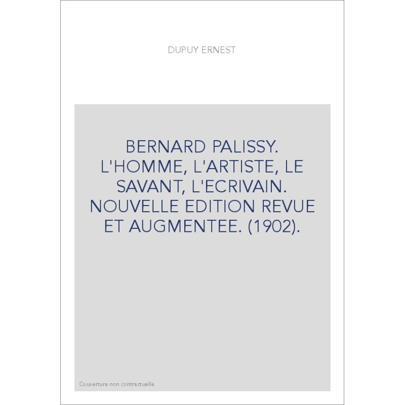 BERNARD PALISSY. L'HOMME, L'ARTISTE, LE SAVANT, L'ECRIVAIN. NOUVELLE EDITION REVUE ET AUGMENTEE. (1902).