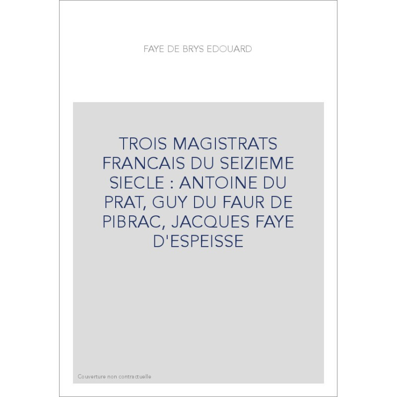 TROIS MAGISTRATS FRANCAIS DU SEIZIEME SIECLE : ANTOINE DU PRAT, GUY DU FAUR DE PIBRAC, JACQUES FAYE D'ESPEISSE