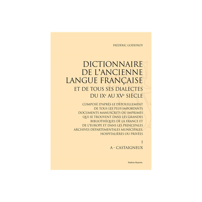DICTIONNAIRE DE L'ANCIENNE LANGUE FRANÇAISE ET DE TOUS SES DIALECTES DU IX AU XV SIÈCLE
