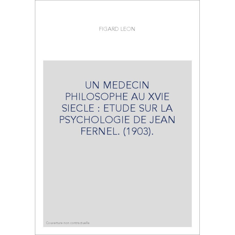 UN MEDECIN PHILOSOPHE AU XVIE SIECLE : ETUDE SUR LA PSYCHOLOGIE DE JEAN FERNEL. (1903).