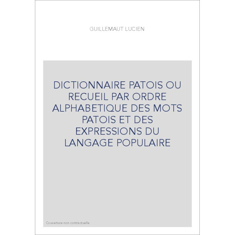 DICTIONNAIRE PATOIS OU RECUEIL PAR ORDRE ALPHABETIQUE DES MOTS PATOIS ET DES EXPRESSIONS DU LANGAGE POPULAIRE