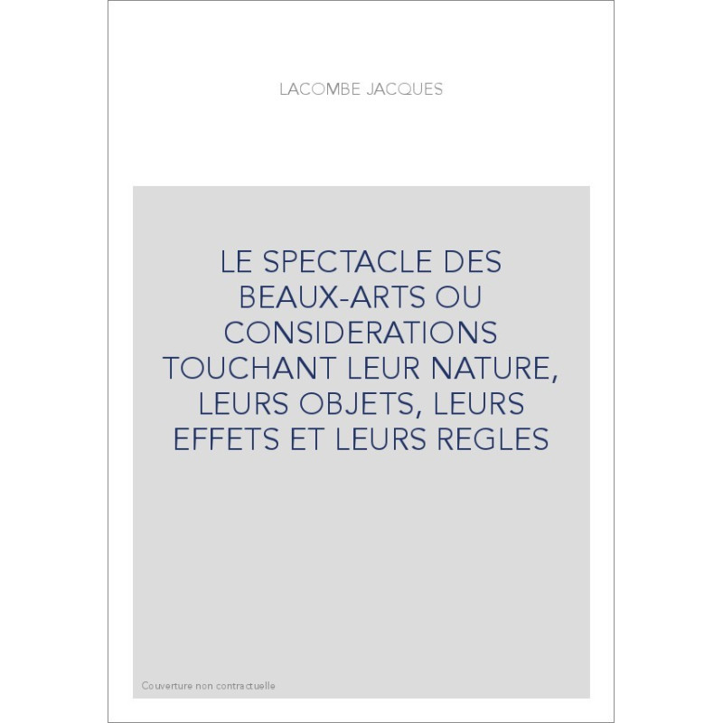 LE SPECTACLE DES BEAUX-ARTS OU CONSIDERATIONS TOUCHANT LEUR NATURE, LEURS OBJETS, LEURS EFFETS ET LEURS REGLES